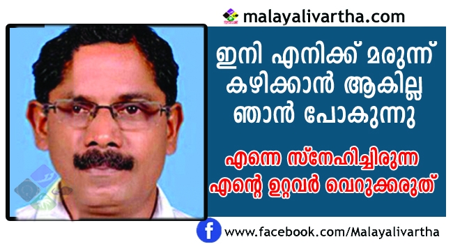 കഴിഞ്ഞ ദിവസം രോഗത്തെക്കുറിച്ചു വിശദമായ പരിശോധന നടത്തുകയും ചെയ്തു. പരിശോധന ഫലം ലഭിച്ചതിനെ തുടര്ന്നാണു ആത്മഹത്യ ചെയ്തത് എന്നു സുചനയുണ്ട്.