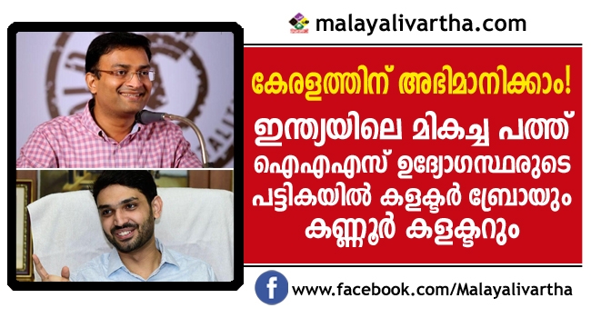 ഇന്ത്യയിലെ മികച്ച പത്ത് ഐഎഎസ് ഉദ്യോഗസ്ഥരുടെ പട്ടിക പുറത്ത്; കളക്ടര് ബ്രോയും കണ്ണൂര് കളക്ടറും പട്ടികയില് ഇടംപിടിച്ചത് ഇങ്ങനെ