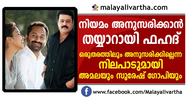 പുതുച്ചേരിയിൽ ആഡംബര കാർ രജിസ്ട്രേഷൻ നടത്തി നികുതി വെട്ടിച്ചെന്ന കേസിൽ നിയമം അനുസരിക്കാൻ തയ്യാറായി ഫഹദ്, ഒരു തരത്തിലും അനുസരിക്കില്ലന്ന നിലപാടുമായി അമലയും സുരേഷ് ഗോപിയും