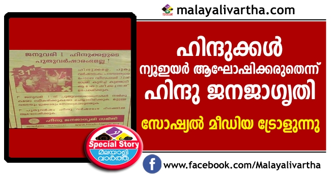 ഇംഗ്ലീഷ് കലണ്ടര് അനുസരിച്ചുള്ള പുതുവല്സരാഘോഷം ഹിന്ദുക്കള് ഡിസംബര് 31ന് ഒഴിവാക്കണമെന്ന്, കുടിച്ച്കൂത്താടിയുള്ള ആഘോഷവും പാടില്ല