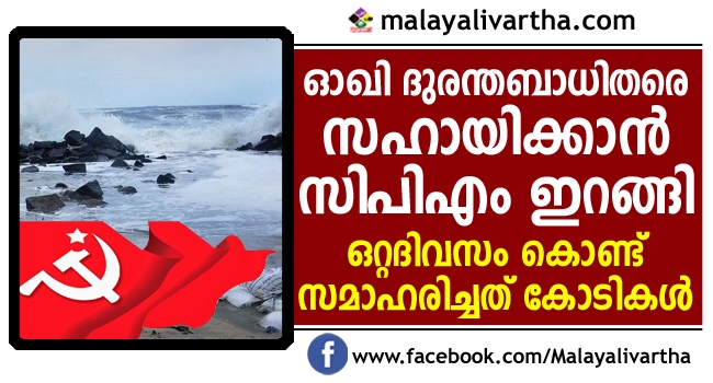 ഓഖി ദുരന്തബാധിതരെ സഹായിക്കാൻ ഒറ്റദിവസം കൊണ്ട് സംസ്ഥാനമൊട്ടാകെ സിപിഎം നടത്തിയ ബക്കറ്റ് പിരിവില് സമാഹരിച്ചത് അഞ്ച് കോടി
