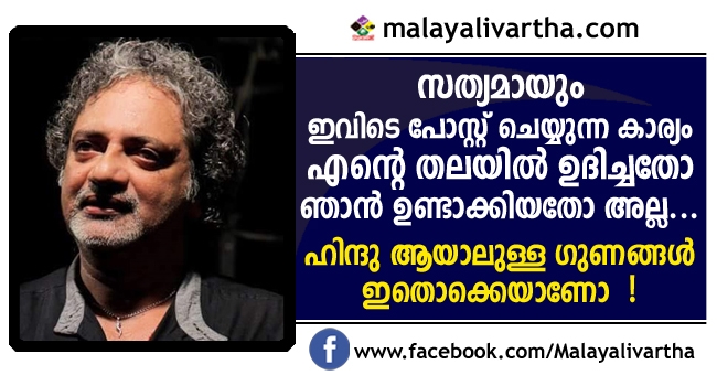 നമ്മുടെ നാട് ഇന്ന് നേരിടേണ്ടി വരുന്ന ഏറ്റവും വലിയ പ്രതിസന്ധി മതത്തിന്റെ പേരിലുള്ള വേർതിരിവും അതിനെ ചൊല്ലിയുള്ള അടിപിടിയുമാണ്. ഒരു ഭാഗത്ത് രാജ്യത്തെ ഹിന്ദുത്വ രാഷ്ട്രമാക്കിമാറ്റാനുള്ള ഒരു വിഭാഗത്തിന്റെ കടന്നു കയറ്റം നടക്കുമ്പോൾ മറു ഭാഗത്ത് ക്രിസ്ത്യാനി മുസൽമാൻ വേർതിരിവ്. മത വിശ്വാസത്തിന്റെ പേരിലുള്ളഈ അടിപിടികള്ക്കിടയില് ഹിന്ദു ആയാലുള്ള ഗുണങ്ങള് എന്തൊക്കെയാണെന്ന് നടനും സംവിധായകനുമായ ജോയ് മാത്യു പറയുന്നു. എന്നാൽ ഈ കാര്യം തന്റെ തലയില് ഉദിച്ചതല്ലെന്നും തന്റെ അഭിപ്രായം അല്ലെന്നും പറഞ്ഞു കൊണ്ട് ഫേസ് ബുക്ക് പോസ്റ്റിന്റെ തുടക്കം . താന് ഒരു മതത്തിന്റേയും അടിമയല്ലെന്നും ജോയ് പറയുന്നുണ്ട്.