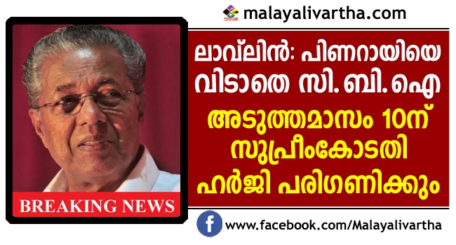 ലാവ്ലിന്കേസില് മുഖ്യമന്ത്രി പിണറായി വിജയനെ കുറ്റവിമുക്തനാക്കിയ ഹൈക്കോടതി നടപടിക്കെതിരെ സി.ബി.ഐ സുപ്രീംകോടതിയല് നല്കിയ അപ്പീല് അടുത്തമാസം 10ന് പരിഗണിക്കും. ജസ്റ്റിസ് എന്.വി രമണ അധ്യക്ഷനായ ബഞ്ചാണ് അപ്പീല് പരിഗണിക്കുന്നത്. മുഖ്യമന്ത്രി പിണറായി വിജയനെതിരെ തെളിവുണ്ടെന്നാണ് സി.ബി.ഐ നല്കിയ അപ്പീലില് പറയുന്നു. വൈദ്യുതി മന്ത്രിയായിരുന്ന പിണറായി വിജയന് അറിയാതെ ഉദ്യോഗസ്ഥര്ക്ക് കരാര് ഒപ്പിടാനാകില്ലെന്നും ഇടപാട് നടത്താനാവില്ലെന്നും സി.ബി.ഐ വ്യക്തമാക്കുന്നു. 2017 ആഗസ്റ്റ് 23നാണ് മുഖ്യമന്ത്രി പിണറായി അടക്കമുള്ള പ്രതികളെ ഹൈക്കോടതി കുറ്റവിമുക്തരാക്കിയത്. ഇതിനെതിരെ വൈകിയാണ് സി.ബി.ഐ അപ്പീല് നല്കിയത്. ഇതിനെതിരെ കാലാവധി കഴിഞ്ഞ് ഡിസംബര് 20നാണ് സി.ബി.ഐ അപ്പീല് നല്കിയത്. അപ്പീല് വൈകിയതിനാല് പരിഗണിക്കണമോ എന്ന് അന്ന് കോടതി തീരുമാനിക്കും.