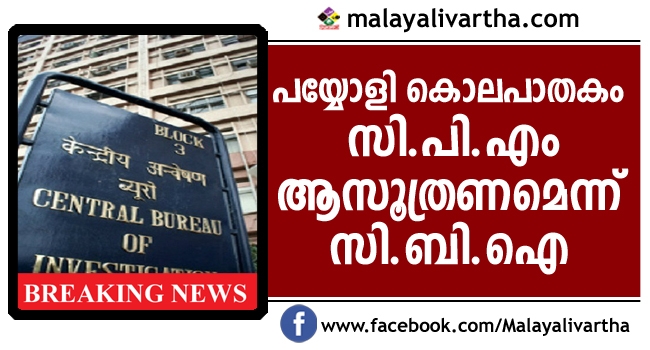 പയ്യോളി മനോജ് വധം സി.പി.എം ആസൂത്രണം ചെയ്തതെന്ന് സി.ബി.ഐ. ഇതേ തുടര്ന്ന് പ്രതികളെ കോടതി 12 ദിവസത്തേക്ക് സി.ബി.ഐ കസ്റ്റഡിയില് വിട്ടു. രണ്ട് പേര് കൂടി പിടിയിലാകാനുണ്ട്. സി.ഐ.ടി.യു പ്രവര്ത്തകനായ ഓട്ടോ ഡ്രൈവര് ബാബുവിനെ വെട്ടിയതാണ് കൊലപാതകത്തില് കലാശിച്ചത്. കൊലപാതകം സി.പി.എം ലോക്കല് കമ്മിറ്റി തീരുമാന പ്രകാരമാണ്. ലോക്കല്കമ്മിറ്റി തീരുമാനം ഏര്യാകമ്മിറ്റി അംഗീകരിച്ചു. ശേഷം ബ്രാഞ്ചുകളില് നിന്ന് കൃത്യം നിര്വഹിക്കാന് പ്രവര്ത്തകരെ തെരഞ്ഞെടുത്തു. ശാസ്ത്രീയ തെളിവുകളുടെ അടിസ്ഥാനത്തിലാണ് പ്രതികളെ അറസ്റ്റ് ചെയ്തത്. കൃത്യത്തിന് ഉപയോഗിച്ച ആയുധങ്ങള് കണ്ടെടുത്തെന്നും സി.ബി.ഐ കോടതിയെ അറിയിച്ചു.