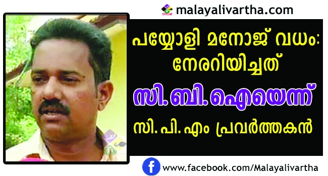 പയ്യോളി മനോജ് വധക്കേസില് സി.ബി.ഐ നടത്തുന്നത് ശരിയായ അന്വേഷണമാണെന്ന് സി.പി.എം പ്രവര്ത്തകനായ ബിജു. പാര്ട്ടിയിലെ വിഭാഗീയതയാണ് താനടക്കമുള്ളവരെ പ്രതിയാക്കിയതെന്നും ബിജു ആരോപിച്ചു. പാര്ട്ടി നല്കിയ പട്ടിക അനുസരിച്ചാണ് പൊലീസ് പ്രതി പട്ടിക തയ്യാറാക്കിയത്. പയ്യോളി മുന് ലോക്കല് കമ്മിറ്റി അംഗമായ ബിജു വ്യക്തമാക്കി. സി.ബി.ഐ ഹാജരാകാന് തനിക്ക് നോട്ടീസ് നല്കിയിട്ടുണ്ടെന്നും കേസുമായി ബന്ധപ്പെട്ട് അറിയാവുന്ന മുഴുവന് വിവരങ്ങളും കൈമാറുമെന്നും ബിജു വ്യക്തമാക്കി. കൃത്യത്തിന്റെ ഗൂഢാലോചനയില് പങ്കെടുത്ത ജില്ലാ കമ്മിറ്റി അംഗത്തെ ഉള്പ്പെടെയാണ് സി.ബി.ഐ കഴിഞ്ഞ ദിവസം അറസ്റ്റ് ചെയ്തത്. ഇതിനെതിരെ പ്രദേശത്ത് സി.പി.എം വെള്ളിയാഴ്ച ഹര്ത്താല് ആചരിച്ചിരുന്നു.