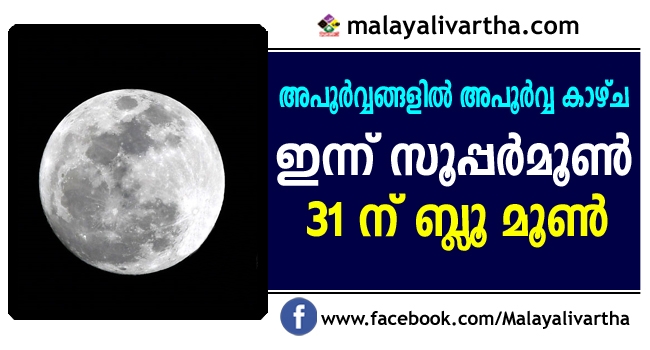 ചൊവ്വാഴ്ചത്തെ പൂര്ണചന്ദ്രന് ധനുമാസത്തിലെ തിരുവാതിരയാണെന്ന പ്രത്യേകത കൂടിയുണ്ട്. 2015 ജൂലൈയിലാണ് അവസാനമായി ബ്ലൂമൂണ് പ്രതിഭാസം ഉണ്ടായത്. സൂപ്പര് മൂണ് പ്രതിഭാസത്തെ തുടര്ന്ന് ശക്തമായ തിരമാലക്ക് സാധ്യതയുള്ളതായി ദുരന്തനിവാരണ അതോറിറ്റി അറിയിച്ചു.