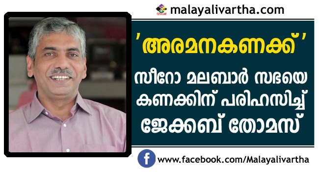 സീറോ മലബാര് സഭയെ പരിഹസിച്ച് ഡി.ജി.പി ജേക്കബ് തോമസ് രംഗത്ത്. സീറോ മലബാര് സഭ എറണാകുളം-അങ്കമാലി അതിരൂപതയുടെ ഭൂമി ഇടപാടിനെയാണ് ജേക്കബ് തോമസ് കണക്കിന് പരിഹസിച്ചിരിക്കുന്നത്. അതിരൂപതയുടെ ഭൂമി ഇടപാട് സംബന്ധിച്ച വിവരങ്ങളെ 'അരമനകണക്ക്' എന്ന തലക്കെട്ടോടെയാണ് ജേക്കബ് തോമസ് ഫേസ്ബുക്കില് പോസ്റ്റ് ചെയ്തത്.