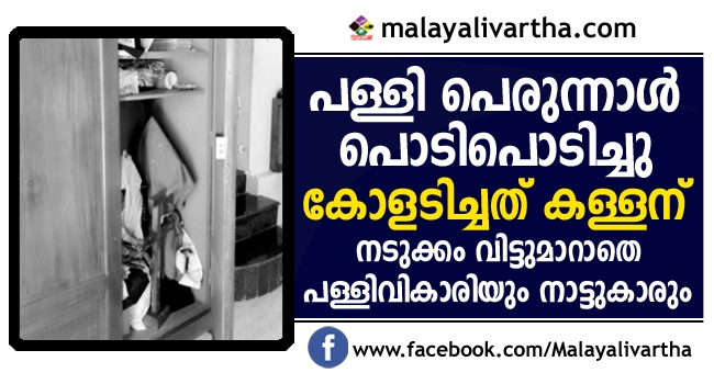 ഇന്നലെ പുലര്ച്ചെ അഞ്ചിനു പ്രധാനശുശ്രൂഷകന് പള്ളിയിലെത്തിയപ്പോഴാണു മോഷണവിവരം പുറത്തറിയുന്നത്. പള്ളി ഓഫീസിന്റെ താഴു തകര്ത്ത് അകത്തുകടന്ന മോഷ്ടാവ് ട്രസ്റ്റിയുടെ മേശയുടെ സമീപത്തുള്ള സേഫില്നിന്നു പണം കവരുകയായിരുന്നു. പെരുന്നാള് പ്രമാണിച്ച് അത്യാവശ്യ ചെലവുകള്ക്കു സൂക്ഷിച്ചിരുന്ന 85,515 രൂപയും ചാരിറ്റി ഫണ്ടായ 9,200 രൂപയും ഉള്പ്പെടെയാണു മോഷ്ടിക്കപ്പെട്ടത്. പള്ളിക്കുള്ളിലെ രണ്ടു നടപ്പെട്ടികളില്നിന്നായി 25,000 രൂപയ്ക്കു മുകളില് പണം അപഹരിച്ചതായും പള്ളി ഭാരവാഹികള് പറഞ്ഞു.