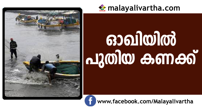 ഓഖിയില് കാണാതായവരുടെ പുതിയ കണക്കുമായി സര്ക്കാര്; വിവിധ തീരങ്ങളില് നിന്ന് കാണാതായത് 216 പേരെ; 141 കേരളീയരും 75 പേര് ഇതരസംസ്ഥാനങ്ങളില് നിന്നുള്ളവരും; ഇതരസംസ്ഥാനക്കാരെ കുറിച്ച് വിശദാംശങ്ങള് ലഭ്യമല്ല