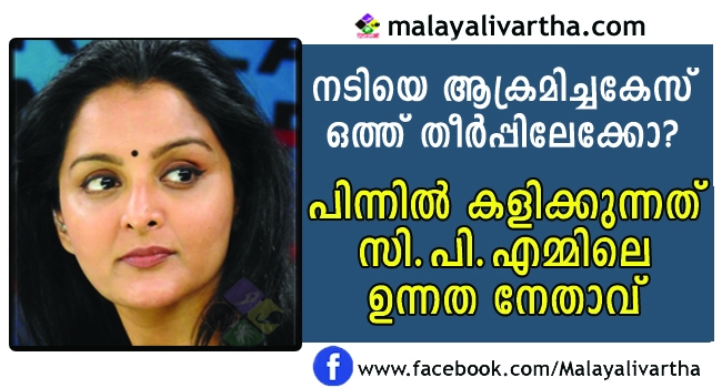 നടി ആക്രമിക്കപ്പെട്ട കേസിൽ ഒത്തു തീർപ്പിനായി സിപിഎമ്മിലെ ഒരു ഉന്നത നേതാവ് മഞ്ജുവിനെ സമീപിച്ചതെന്നാണ് സൂചന. കേന്ദ്രത്തിൽ സ്വാധീനമുള്ള ഒരു ഉന്നത ബിജെപി നേതാവും, സിനിമാ ബന്ധമുള്ള ഒരു ഉന്നത സിപിഎം നേതാവും ഇടപെട്ട് പ്രശ്നങ്ങളെല്ലാം ഒത്തു തീർക്കുമെന്നാണ് ധാരണ.