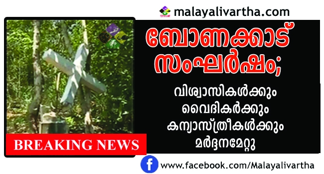 ബോണക്കാട് കുരിശുമലയില് വിശ്വാസികള്ക്ക് നേരെ പൊലീസ് ലാത്തിവീശി. സംഘര്ഷത്തില് വൈദികരും കന്യാസ്ത്രീകളും ഉള്പ്പെടെ നിരവധി പേര്ക്ക് പരിക്ക്. വിശ്വാസികള് ബാരിക്കേട് തകര്ക്കാന് ശ്രമിച്ചതോടെയാണ് ലാത്തി വീശിയത്. വിശ്വാസികള് പൊലീസിന് നേരെ കല്ലെറിഞ്ഞു. നെയ്യാറ്റിന്കര രൂപതയിലെ വിശ്വാസികളുടെ കുരിശുമലയാത്ര പൊലീസ് തടഞ്ഞതോടെയാണ് സംഘര്ഷം തുടങ്ങിയത്. ലാത്തിച്ചാര്ജിനെ തുടര്ന്ന് ചിതറിയോടിയ സ്ത്രീകളും കുട്ടികളും അടക്കം നിരവധി പേര്ക്ക് പരിക്കേറ്റു. പൊലീസുകാര്ക്കും പരിക്കുണ്ട്. പൊലീസ് വിശ്വാസികള്ക്ക് നേരെയും കല്ലെറിഞ്ഞു. വനഭൂമിയിലേക്ക് അതിക്രമിച്ച് കടക്കാന് ശ്രമിച്ചവരെയാണ് തടഞ്ഞതെന്ന് പൊലീസ് അറിയിച്ചു. സംഘര്ഷത്തില് പാലോട് സി.ഐ മനോജ്കുമാര്, വിതുര എസ്.ഐ കെ.ആര് ബിജു, വലിയമല എസ്.ഐ അജേഷ്, വിതുര എ.എസ്.ഐ വിനോദ്,സി.പി.ഒ സജീര്, റാണി, അനിത, കെ.എ.പിയിലെ 12 പോലീസുകാര് എന്നിവര് പരുക്കേറ്റ് ആശുപത്രിയിലാണ്.