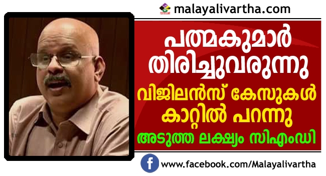ഒന്നിലധികം വിജിലന്സ് കേസുകള് പത്മകുമാറിനെതിരേ ഉണ്ടായിരുന്നെങ്കിലും അതിലൊന്നും കാര്യമില്ലെന്നു കാണിച്ച് അദ്ദേഹത്തെ സർവീസിലേക്ക് തിരിച്ചെടുക്കാന് നീക്കം. പ്രമുഖ പൊതുമേഖലാ സ്ഥാപനമായ മലബാര് സിമന്റ്സ് മാനേജിംഗ് ഡയറക്ടറും പൊതുമേഖലാ സ്ഥാപനങ്ങളുടെ പുനസ്സംഘടനയും ഉന്നത തല നിയമനങ്ങളും മറ്റും നടത്തുന്ന റിയാബ് എന്ന സ്ഥാപനത്തിന്റെ സെക്രട്ടറിയുമായിരുന്ന പത്മകുമാറിനെയാണ് സസ്പെൻഷന് ശേഷം സർവീസിലേക്ക് തിരിച്ചെടുക്കുന്നത്.
