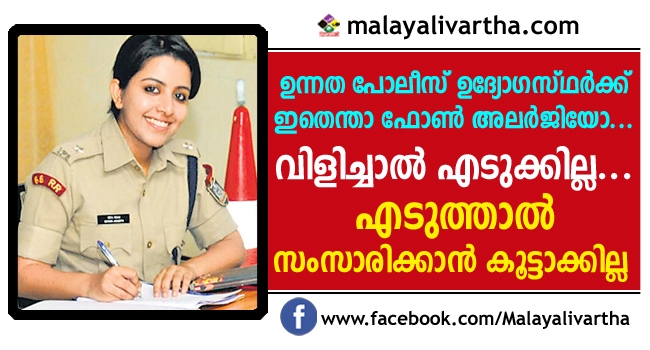കോഴിക്കോട് സിറ്റി പോലീസിന്റെ ചുമതല വഹിക്കുന്ന ഡെപ്യൂട്ടി പൊലീസ് കമീഷണര് മെറിന് ജോസഫിനും കമീഷണര് എസ്. കാളിരാജ് മഹേഷ് കുമാറിനുമെതിരെ നിരവധി തവണ വിളിച്ചാലും ഫോണ് എടുക്കില്ലെന്ന് ആരോപണം. തന്റെ കീഴിലുള്ള അസി. കമീഷണര്മാരോടും സിഐ മാരോടും എസ്.ഐ മാരോടും ഇക്കാര്യത്തില് ജാഗ്രത പുലര്ത്താന് നിര്ദേശിക്കേണ്ട ഉദ്യോഗസ്ഥയായ ഡി.സി.പിയാണ് ഒൗദ്യോഗിക ഫോണില് സംസാരിക്കാന് തയ്യാറാകാത്തത്.
