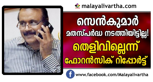 സെൻകുമാർ മതസ്പർദ്ധ നടത്തിയതിന് തെളിവില്ല ; ഫോറൻസിക് റിപ്പോർട്ട് പുറത്ത്
