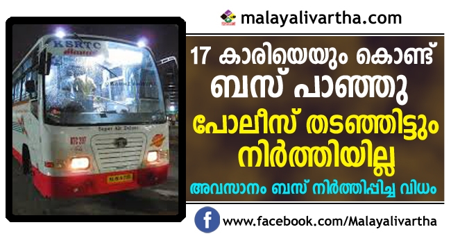 വിദ്യാര്ത്ഥിനിയെയും കൊണ്ട് രാത്രിയില് കെഎസ്ആര്ടിസി മിന്നൽ പാഞ്ഞു; ഒടുവിൽ ബസ് നിർത്തിക്കാൻ സിനിമ സ്റ്റൈലിൽ പോലീസിന്റെ കിടിലൻ പണി