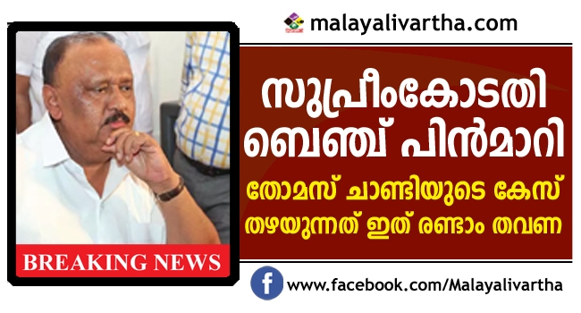 തോമസ് ചാണ്ടിയുടെ കേസ് പരിഗണിക്കുന്നതില് നിന്ന് രണ്ടാം തവണയും സുപ്രീം കോടതി ബെഞ്ച് പിന്മാറി ; കേസ് വെള്ളിയാഴ്ച പരിഗണിക്കും