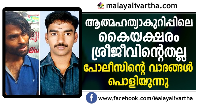 പോലീസിന്റെ വാദങ്ങള് പൊളിയുന്നു; ആത്മഹത്യ കുറിപ്പിലെ കയ്യക്ഷരം ശ്രീജീവിന്റെതല്ല!!