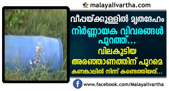 വെള്ളത്തിലും കരയിലുമായി വീപ്പ കിടന്നതിനാൽ മൃതദേഹത്തിന്റെ പഴക്കം കൃത്യമായി നിർണയിക്കാൻ സാധിച്ചിട്ടില്ല.