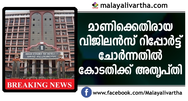 കെ.എം മാണിക്കെതിരായ വിജിലന്സിന്റെ റിപ്പോര്ട്ട് ചോര്ന്നതില് ഹൈക്കോടതി അതൃപ്തി രേഖപ്പെടുത്തി. കഴിഞ്ഞ ദിവസമാണ് വിജിലന്സ് കോടതിയില് റിപ്പോര്ട്ട് സമര്പ്പിച്ചത്. അതിലെ വിവരങ്ങള് മാധ്യമങ്ങള് റിപ്പോര്ട്ട് ചെയ്തിരുന്നു. സര്ക്കാര് അഭിഭാഷകനെ വിളിച്ചുവരുത്തിയാണ് അതൃപ്തി അറിയിച്ചത്.റിപ്പോര്ട്ടിന്മേല് മാധ്യമചര്ച്ചകള് പാടില്ലെന്നും കോടതി വിലക്കി. ബാര്കോഴ കേസില് കെ.എം മാണിക്കെതിരെ വ്യക്തമായ തെളിവ് കണ്ടെത്താനായില്ലെന്നും ബിജുരമേശ് നല്കിയ ഫോണ് സംഭാഷണം എഡിറ്റ് ചെയ്തതാണെന്നും അതിനാല് അന്വേഷണത്തിന് സമയം നീട്ടി നല്കണമെന്നുമാണ് വിജിലന്സ് കോടതിയെ അറിയിച്ചത്. തുടര്ന്ന് 45 ദിവസത്തിനകം അന്വേഷണം പൂര്ത്തിയാക്കണമെന്ന് കോടതി നിര്ദ്ദേശിക്കുകയായിരുന്നു.