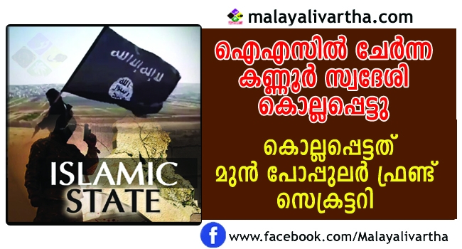 ഐഎസില് ചേര്ന്ന മലയാളി കൊല്ലപ്പെട്ടു ; കൊല്ലപ്പെട്ടത് മുന് പോപ്പുലര് ഫ്രണ്ട് സെക്രട്ടറിയും കൊലക്കേസ് പ്രതിയുമായിരുന്നയാൾ