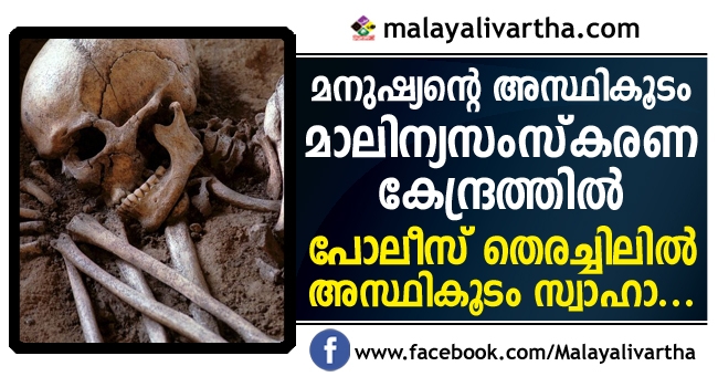 കടാതി വളക്കുഴി മാലിന്യ സംസ്കരണ കേന്ദ്രത്തില് മനുഷ്യന്റെ അസ്ഥികൂടം; കണ്ട് ഭയന്ന ജീവനക്കാർ മാലിന്യമിട്ട് മൂടി; ഒടുവിൽ പോലീസ് എത്തിയപ്പോൾ അസ്ഥികൂടം സ്വാഹാ...
