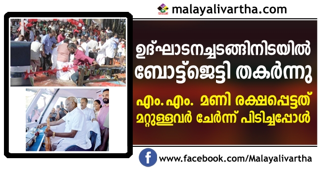 മന്ത്രി മണി പങ്കെടുത്ത ഉദ്ഘാടനച്ചടങ്ങിനിടയിൽ ബോട്ട്ജെട്ടി തകര്ന്നു ; മന്ത്രി രക്ഷപ്പെട്ടത് മറ്റുള്ളവരുടെ കരുതലിൽ
