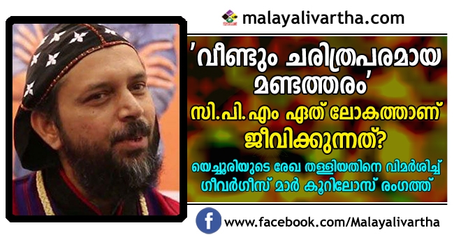 സീതാറാം യെച്ചൂരിയുടെ രേഖ വോട്ടിനിട്ട് തള്ളിയ സി.പി.എം നിലപാടിനെ ചരിത്രപരമായ മണ്ടത്തരമെന്ന് വിശേഷിപ്പിച്ച് യാക്കോബായ സഭയുടെ നിരണം ഭദ്രാസനാധിപന് ഗീവര്ഗീസ് മാര് കൂറിലോസ്