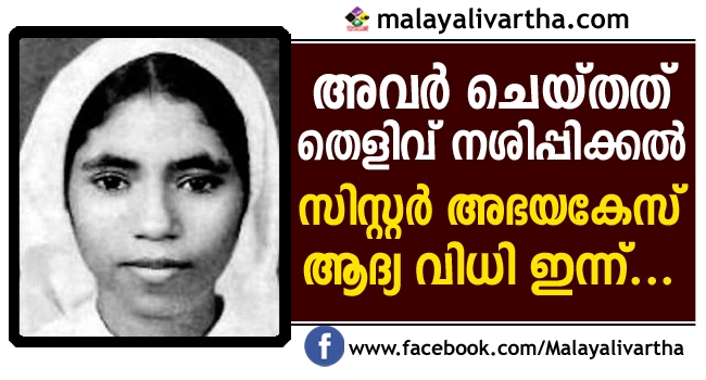 വര്ഷങ്ങള്ക്ക് മുന്പ് ദുരൂഹ സാഹചര്യത്തില് മരിച്ച സിസ്റ്റര് അഭയയുടെ കേസില് തെളിവുകള് നശിപ്പിച്ച് പ്രതികള്ക്ക് രക്ഷപെടാന് അവസരം ഒരുക്കി; ആദ്യ വിധി ഇന്ന്...