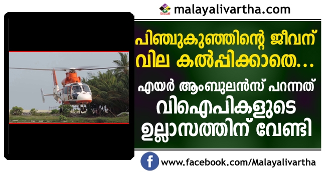 പിറന്ന് വീണ ചൂട് മാറും മുമ്പേ ചോരകുഞ്ഞിന് ദാരുണാന്ത്യം; വിഐപികളുടെ ഉല്ലാസ യാത്രയ്ക്ക് വേണ്ടി എയർ ആംബുലൻസ് വഴിമാറി പറന്നു... ആ കുഞ്ഞിന് വേണ്ടി പത്ത് മിനിറ്റ് മാറ്റിവച്ചിരുന്നെങ്കിൽ പുഞ്ചിരിച്ച് കൊണ്ട് അവൻ ഈ ലോകത്തിൽ കാണുമായിരുന്നു