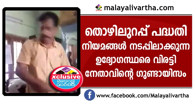 പത്തനംതിട്ട ജില്ലയിൽ തൊഴിലുറപ്പ് നിയമങ്ങൾ നടപ്പിലാക്കുന്ന ഉദ്യോഗസ്ഥരെ വിരട്ടുന്ന രാഷ്ട്രീയക്കാരുടെ ദൃശ്യങ്ങൾ പുറത്ത്. ജില്ല, ബ്ലോക്ക് തലത്തിലുള്ള സെമിനാറുകൾ നടക്കുമ്പോൾ തൊഴിലുറപ്പ് നിയമത്തെക്കുറിച്ച് സംസാരിക്കുന്ന ഇക്കൂട്ടർ തന്നെ നിയമം നടപ്പിലാക്കാൻ ശ്രമിച്ച ഉദ്യോഗസ്ഥരുടെ ഓഫീൽ കയറി ജോലി തടസപ്പെടുത്തുകയും, ചീത്ത വിളിക്കുകയും, വിരട്ടുകയും ചെയുന്ന രാഷ്ട്രീയക്കാരുടെ ദൃശ്യങ്ങളാണ് പുറത്തുവന്നത്.