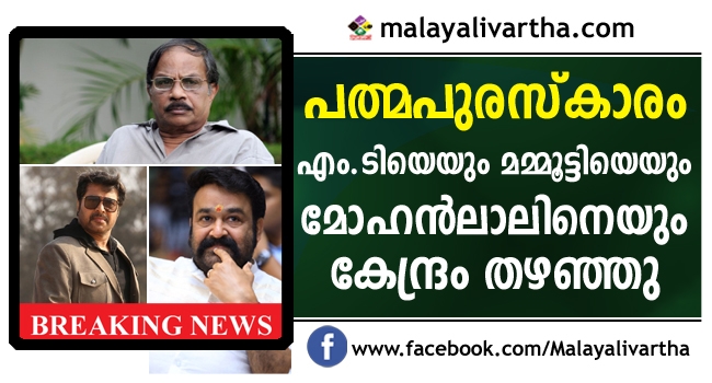ഇത്തവണത്തെ പത്മപുരസ്ക്കാര പട്ടികയിലേക്ക് കേരളം നല്കിയ പട്ടികയിലുണ്ടായിരുന്ന എം.ടി വാസുദേവന്നായരെയും മമ്മൂട്ടിയെയും മോഹന്ലാലിനെയും കേന്ദ്രസര്ക്കാര് ഒഴിവാക്കി. സംസ്ഥാനം നല്കിയ 42 പേരുടെ ലിസ്റ്റില് നിന്ന് ഡോ. ഫിലിപ്പോസ് മാര് ക്രിസോസ്റ്റം തിരുമേനിയെ മാത്രമാണ് തെരഞ്ഞെടുത്തത്. പൊതുപ്രവര്ത്തകനായ ജോമോന്പുത്തന് പുരയ്ക്കല് വിവരാവകാശ നിയമപ്രകാരമാണ് ഈ വിവരങ്ങള് ശേഖരിച്ചത്. പത്മശ്രീ ലഭിച്ച മമ്മൂട്ടിയെയും മോഹന്ലാലിനെയും എം.ടിയെയുമാണ് പത്മവിഭൂഷണ് പുരസ്ക്കാരത്തിനാണ് കേരളം ശുപാര്ശ ചെയ്തത്. നോട്ട് നിരോധനം ഉള്പ്പെടെയുള്ള വിഷയങ്ങളില് കേന്ദ്രസര്ക്കാരിനെതിരെ പരസ്യനിലപാട് എടുത്തതാണ് എം.ടി വാസുദേവന് നായരെ ഒഴിവാക്കാന് കാരണമെന്നറിയുന്നു. പ്രധാനമന്ത്രി നരേന്ദ്രമോദിയുടെ പ്ലാസ്റ്റിക് മണി ഇടപാടിനെയും എം.ടി വിമര്ശിച്ചിരുന്നു. തുടര്ന്ന് എം.ടിക്കെതിരെ സംഘപരിവാര് വ്യാപക പ്രതിഷേധമാണ് നടത്തിയത്.