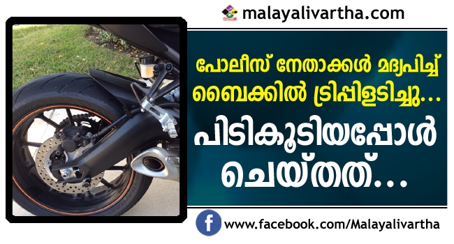 പോലീസ് നേതാക്കള് മദ്യലഹരിയിൽ ബൈക്കില് ട്രിപ്പിളടിച്ചു; എസ്.ഐ കേസെുക്കാന് തുടങ്ങിയപ്പോൾ ഭീഷണി മുഴക്കി കടന്നുകളഞ്ഞു