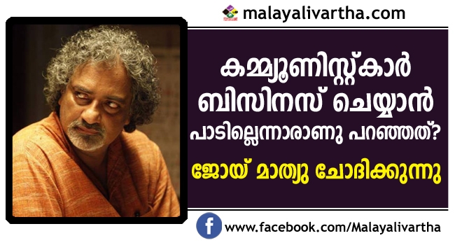 കമ്മ്യൂണിസവും കച്ചവടവും ; ബിനോയ് കോടിയേരിയുടെ ബിസിനസുമായി ബന്ധപ്പെട്ട വിവാദത്തിൽ തന്റെ അഭിപ്രായം തുറന്നെഴുതി ജോയ് മാത്യു