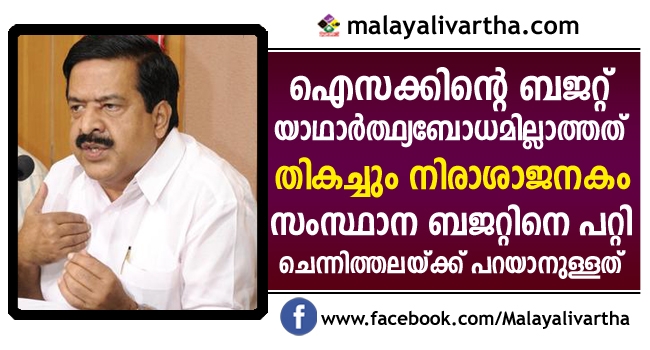 സ്ത്രീകള്ക്കുവേണ്ടിയുള്ള ബജറ്റാണെന്ന് പറയുമ്ബോഴും കഴിഞ്ഞ തവണ സ്ത്രീ സുരക്ഷയ്ക്കായി പ്രഖ്യാപിച്ചിട്ടുള്ള പല പദ്ധതികളും ഇത്തവണ നടപ്പാക്കിയിട്ടില്ല , ബജറ്റ് വെറും പ്രഖ്യാപനങ്ങളില് മാത്രം ഒതുങ്ങി നില്ക്കുന്നതാണ്. സംസ്ഥാനത്തിന്റെ നിലവിലെ സാമ്ബത്തിക സ്ഥിതിയെ പ്രതിനിധാനം ചെയ്യുന്ന ഒരു ബജറ്റല്ല ഇത്. ജനങ്ങളുടെ കണ്ണില് പൊടിയിടുക എന്ന ലക്ഷ്യത്തോടെ അവതരിപ്പിച്ച ബജറ്റാണിത് ഭാവനയില് ഉരുതിരിഞ്ഞ് വരുന്ന കാര്യങ്ങളല്ലാതെ യാഥാര്ത്ഥ്യബോധത്തോടു കൂടിയുള്ള ഒരു ബജറ്റായി ഇതിനെ കാണാനാകില്ലെന്നും ചെന്നിത്തല വ്യക്തമാക്കി.