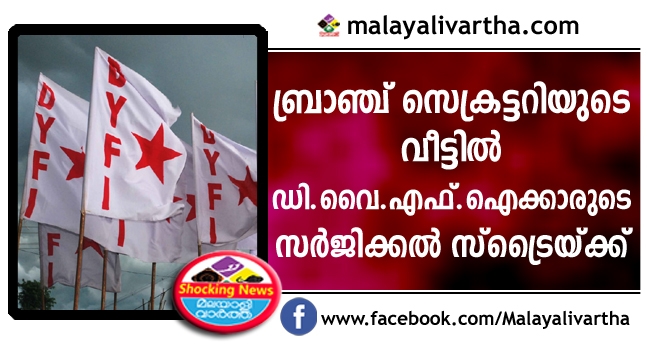പതിനഞ്ചോളം വരുന്ന ഡി.വൈ.എഫ്.ഐ പ്രവര്ത്തകര് സി.പി.എം ബ്രാഞ്ച് സെക്രട്ടറിയുടെ വീട്ടില് അതിക്രമിച്ച് കയറി അക്രമണം നടത്തി