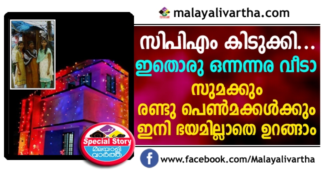 ഷീറ്റ്മേഞ്ഞ അടച്ചുറപ്പില്ലാത്ത വീട്ടില് നിന്നും സുമയും രണ്ട് പെൺമക്കളും ഇനി ഇരുനില വീട്ടിലേയ്ക്ക്... സിപിഎം പ്രവർത്തകർ കൈകോർത്തപ്പോൾ 750 ചതുരശ്രയടിയുള്ള ഇരുനില വീടു പടുത്തുയർത്തിയത് 40 ദിവസം കൊണ്ട്...