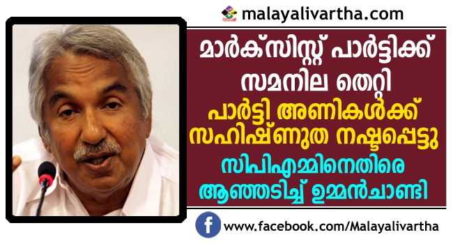 മാര്ക്സിസ്റ്റ് പാര്ട്ടിക്ക് സമനില തെറ്റി ; പാര്ട്ടി അണികള്ക്ക് സഹിഷ്ണുത നഷ്ടപ്പെട്ടു ; ഷുഹൈബിന്റെ കൊലപാതകത്തില് സിപിഎമ്മിനെതിരെ ആഞ്ഞടിച്ച് ഉമ്മന്ചാണ്ടി
