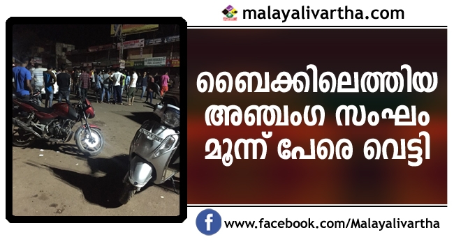 മഞ്ചേശ്വരത്ത് ബൈക്കിലെത്തിയ അഞ്ചംഗ സംഘത്തിന്റെ വെട്ടേറ്റ് മൂന്നു യുവാക്കള്ക്ക് ഗുരുതര പരിക്ക്. ഹൊസങ്കടി ടൗണില് ജൂസ് കട നടത്തുന്ന നസീര് (37), പൊസോട്ടെ ആതിഫ് (20), ഗാന്ധിനഗറിലെ മുഹമ്മദ് അഷ്റഫ് (33) എന്നിവര്ക്കാണ് വെട്ടേറ്റത്. മൂവരെയും മംഗളൂരുവിലെ സ്വകാര്യ ആസ്പത്രിയില് പ്രവേശിപ്പിച്ചു്. ചൊവ്വാഴ്ച രാത്രി 11മണിയോടെ ഹൊസങ്കടിയിലാണ് സംഭവം.