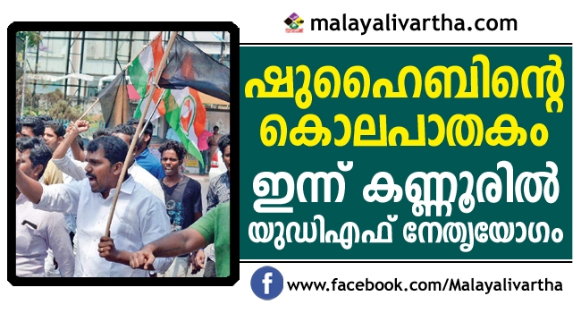 ഷുഹൈബ് വധത്തില് ഭാവി സമര പരിപാടികളെക്കുറിച്ച് ചര്ച്ച ചെയ്യാൻ യുഡിഎഫ് നേതൃയോഗം ഇന്ന് കണ്ണൂരില്