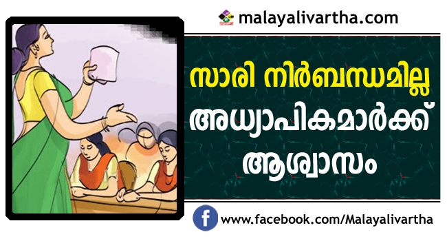 അധ്യാപികമാര് സാരി മാത്രമേ ധരിക്കാവൂ എന്ന് നിര്ബന്ധിക്കരുതെന്ന് ഉന്നതവിദ്യാഭ്യാസ ഡെപ്യൂട്ടി സെക്രട്ടറി