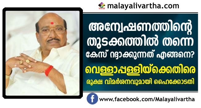 മൈക്രോ ഫിനാന്സ് തട്ടിപ്പ് കേസില് വെള്ളാപ്പള്ളിയ്ക്കെതിരെ രൂക്ഷ വിമര്ശനവുമായി ഹൈക്കോടതി