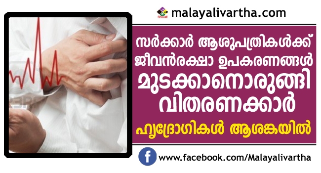 സര്ക്കാര് ആശുപത്രികള്ക്ക് ജീവന്രക്ഷാ ഉപകരണങ്ങള് നല്കേണ്ടതില്ലെന്ന് വിതരണക്കാരുടെ തീരുമാനം. എന്നാൽ ഇത് ബാധിക്കുന്നത് കടുത്ത ഹൃദ്രോഗികളെയാണ്. ഹൃദ്രോഗികൾക്ക് സറ്റെന്റും പേസ്മേക്കറും അടക്കമുള്ള ജീവന്രക്ഷാ ഉപകരണങ്ങള് ലഭിക്കുന്നതിന് ബുദ്ധിമുട്ടുണ്ടാകും. ഹൃദയത്തിന്റെ സ്വാഭാവികമായ പ്രവര്ത്തനം തടസപ്പെടുമ്ബോള് ജീവന് നിലനിറുത്താന് ഉപയോഗിക്കുന്ന ഉപകരണങ്ങളാണ് സ്റ്റെന്റും പേസ്മേക്കറും.