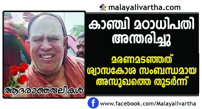 കാഞ്ചി ശങ്കരാചാര്യ ജയേന്ദ്ര സരസ്വതി അന്തരിച്ചു, 82 വയസ്സായിരുന്നു