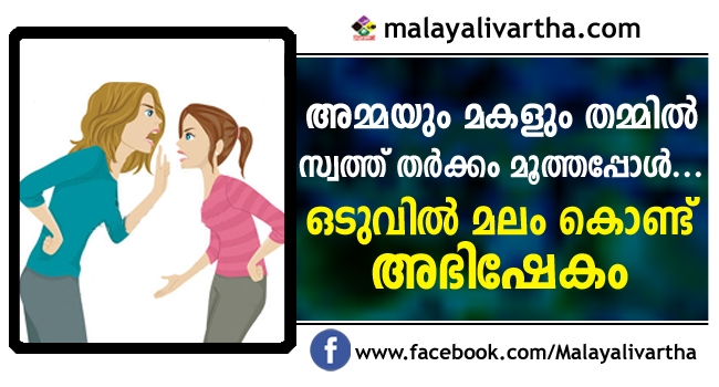 വാക്കുതർക്കം.. കയ്യാങ്കളി...മലാഭിഷേകം ;അമ്മയും മകളും തമ്മിൽ സ്വത്ത് തര്ക്കം ഒടുവിൽ കൊണ്ടെത്തിച്ചത് മലം കൊണ്ടുള്ള അഭിഷേകത്തിലേക്ക്