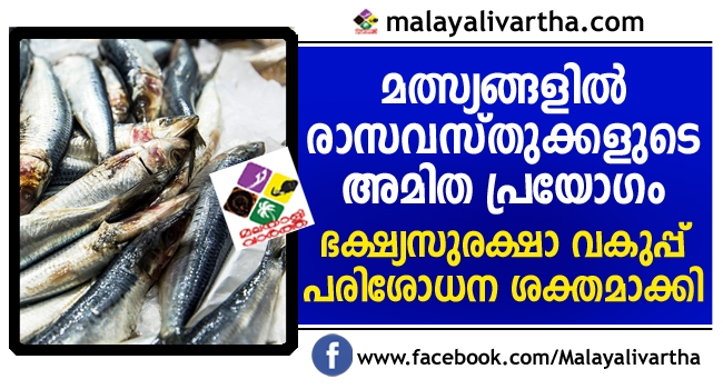 സംസ്ഥാനത്തേക്ക് തമിഴ്നാട്ടില് നിന്നും മറ്റും വ്യാപകമായി ഫോര്മാലിനും അമോണിയയും കലര്ത്തിയ മീനുകള് വില്പനക്കെത്തുന്നതായി കണ്ടെത്തി ; ഭക്ഷ്യ സുരക്ഷാ വകുപ്പ് ജില്ലയില് പരിശോധന ശക്തമാക്കി