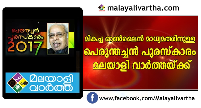 മികച്ച ഓൺലൈൻ മാധ്യമത്തിനുള്ള പെരുന്തച്ചൻ പുരസ്കാരം മലയാളി വാർത്തയ്ക്ക് സ്വന്തം ; ചുരുങ്ങിയ കാലയളവില് ലോകമെമ്പാടുമുള്ള മലയാളികളുടെ മനസില് ഇടം നേടിയ മലയാളി വാര്ത്തയ്ക്ക് ഇത് അഭിമാന നിമിഷം
