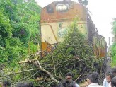 ട്രാക്കില് വീണ മരവും വൈദ്യുതക്കമ്പിയുമായി ട്രെയിനിന്റെ യാത്ര