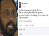 വിവാദ ഫെയ്സ്ബുക്ക് പോസ്റ്റ്: ചെറിയാന് ഫിലിപ്പിനെതിരെ കേസെടുക്കാന് വനിതാ കമ്മിഷന് നിര്ദേശം നല്കി