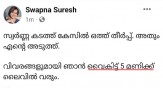 സ്വര്ണക്കടത്ത് കേസില് ഒത്തുതീര്പ്പിന് എത്തിയതാര്?; വൈകിട്ട് അഞ്ചിന് ലൈവില് എല്ലാം പറയുമെന്ന് സ്വപ്ന ..!സ്വര്ണ്ണ കടത്ത് കേസില് ഒത്ത് തീര്പ്പ്. അതും എന്റെ അടുത്ത്. വിവരങ്ങളുമായി ഞാന് വൈകിട്ട് 5 മണിക്ക് ലൈവില് വരും'....!