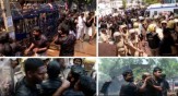 സിഐ യൂണിഫോമിൽ അല്ലായിരുന്നെങ്കിൽ ശവം ഒഴുകി നടന്നേനെ, കൈ വെട്ടിമാറ്റും ബിജെപി നേതാക്കളുടെ കൊലവിളി പ്രസംഗം..യുവമോർ പ്രവർത്തകനെ മർദ്ദിച്ച സി ഐയെ സർവീസിൽ നിന്നും പിരിച്ചുവിടണമെന്നാവശ്യപ്പെട്ട് നടത്തിയ കമ്മിഷണർ ഓഫീസ്, മാർച്ചിനിടെയായിരുന്നു കൊലവിളി മുഴക്കിയത്..മാർച്ചിൽ സംഘർഷമുണ്ടാക്കാൻ ശ്രമമുണ്ടായെങ്കിലും പൊലീസ് സംയമനം പാലിക്കുകയായിരുന്നു..